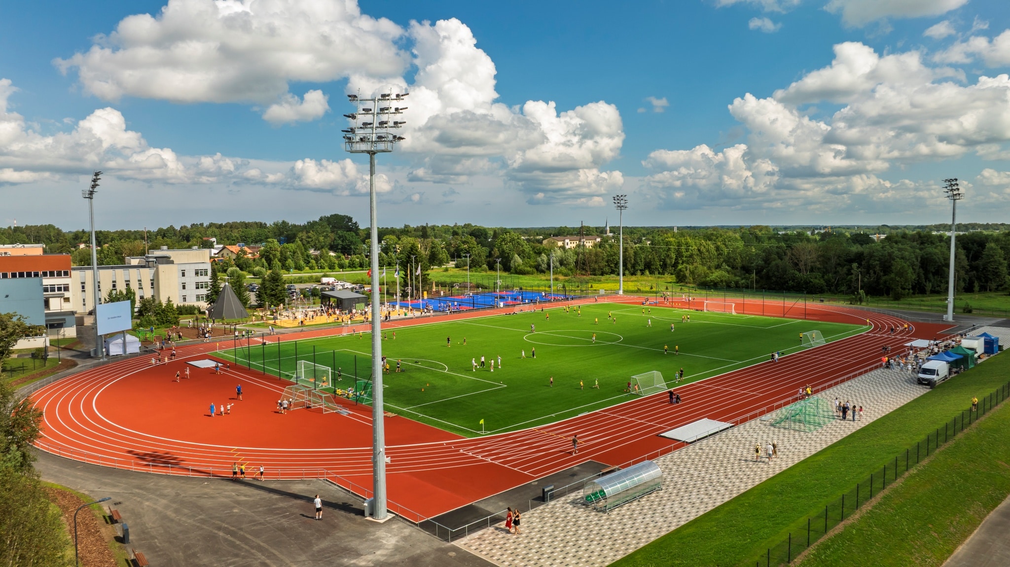 Mullu oli Viru Elektrikaubandusel kaks mõõdukamat staadioniprojekti, üks neist Jüri Gümnaasiumi staadion. “See oli päris tõsine omavalitsuse projekt,” tõdeb Sooäär. “Kergejõustikustaadion koos jalgpalliplatsiga on 30-meetriste mastidega valgustatud, kõrval ka korvpalliväljakud, mis valgustati korralikult 800 luksi tasemel, lisaks rannavõrkpalli platsid. Seega sai päris uhke!”