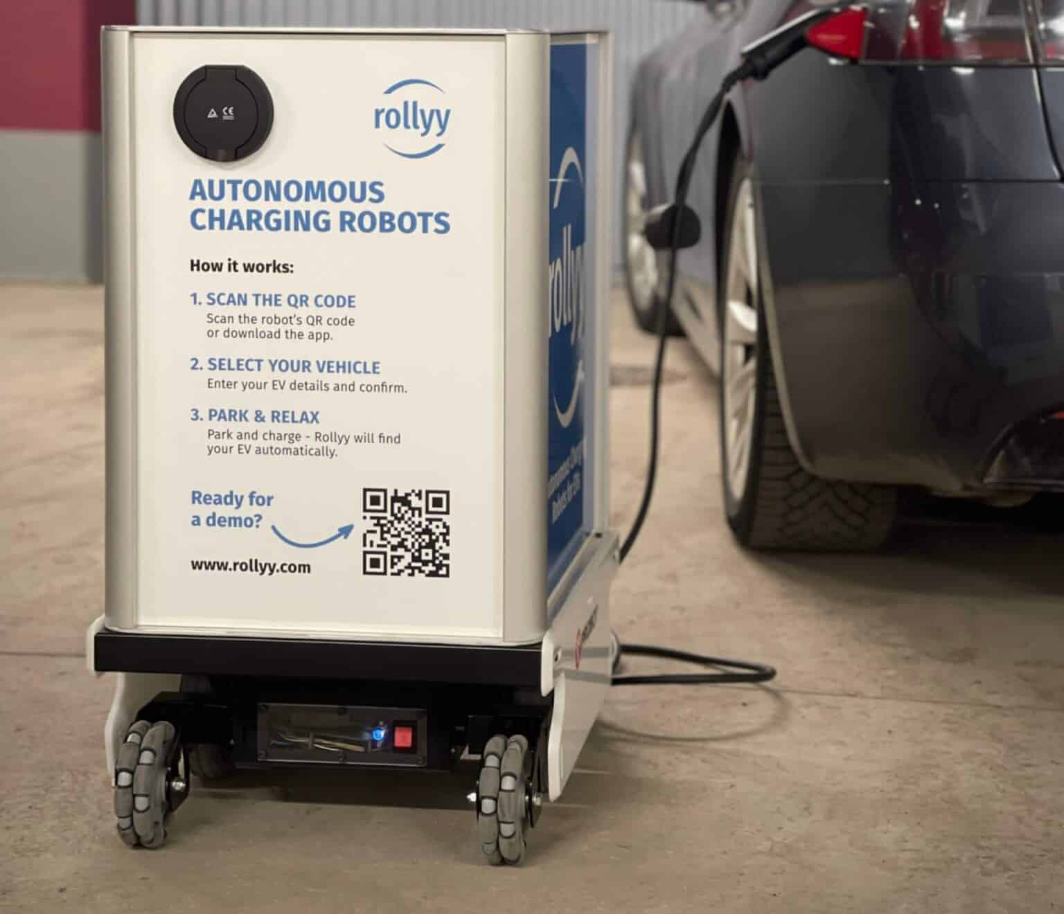 Tallinna linna ellukutstud programmi Test in Tallinn raames katsetab Soome ettevõte Rollyy autonoomset elektriautode laadimisrobotit, mis toob laadimise otse sõiduki parkimiskohale.